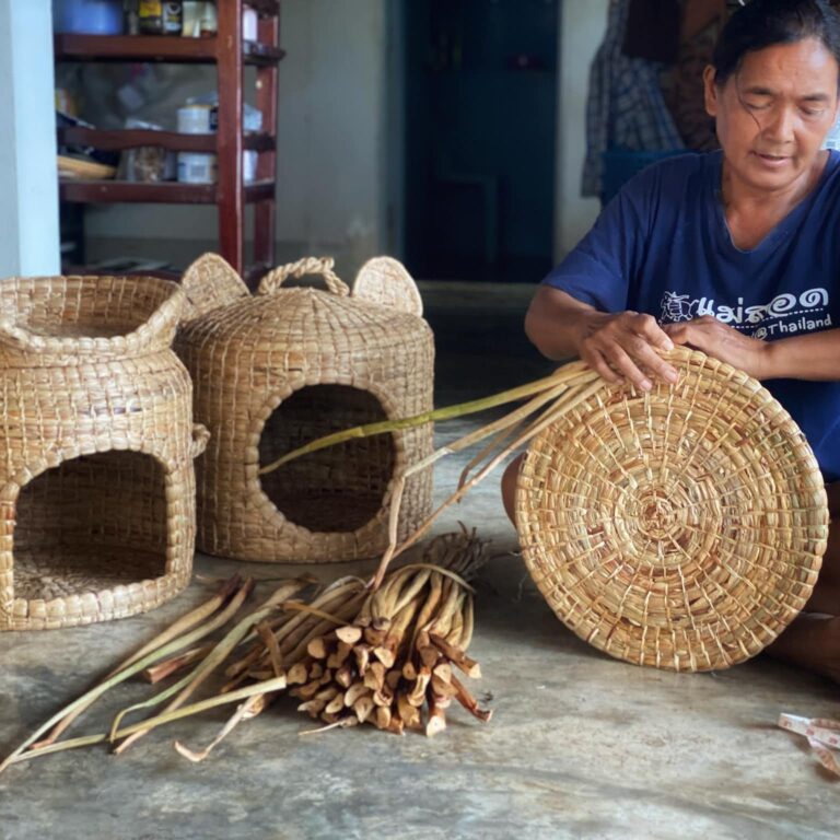 จากผักตบชวาที่ไม่มีใครต้องการ เป็นวัชพืชด้อยค่า แต่ทว่าเราได้ใส่ความคิดกับสิ่งใหม่ๆ ลงในผลิตภัณฑ์จักสานที่หลายคนมองว่า “เชย” ให้กลายเป็นสินค้า “น่าใช้” และ “โดนใจ” ผักตบชวาถูกนำมาสร้างสรรค์เป็นงานหัตถกรรมประเภทกะบะที่นอนสัตว์เลี้ยง กระเป๋าแมว/หมา และของใช้ต่าง ๆ เกี่ยวกับน้องหมา/แมว ต่อยอดคุณค่าและภูมิปัญญาท้องถิ่น ผ่านฝีมือกลุ่มชาวบ้านจักสานผักตบชวา สู่ผลิตภัณฑ์ “CatChawa” ซึ่งทำงานจากความรักในสัตว์เลี้ยง ด้วยฝีมือที่ปราณีต ใช้ได้ง่าย สวยงาม ปลอดภัย ทันสมัย เหมาะกับไลฟ์สไตล์ของคนยุคใหม่ รักและใส่ใจสิ่งแวดล้อม แถมยังช่วยส่งเสริมอาชีพให้กับชาวบ้าน เกษตรกรในชนบทได้มีงานทำ สร้างงาน สร้างเงิน สร้างรายได้