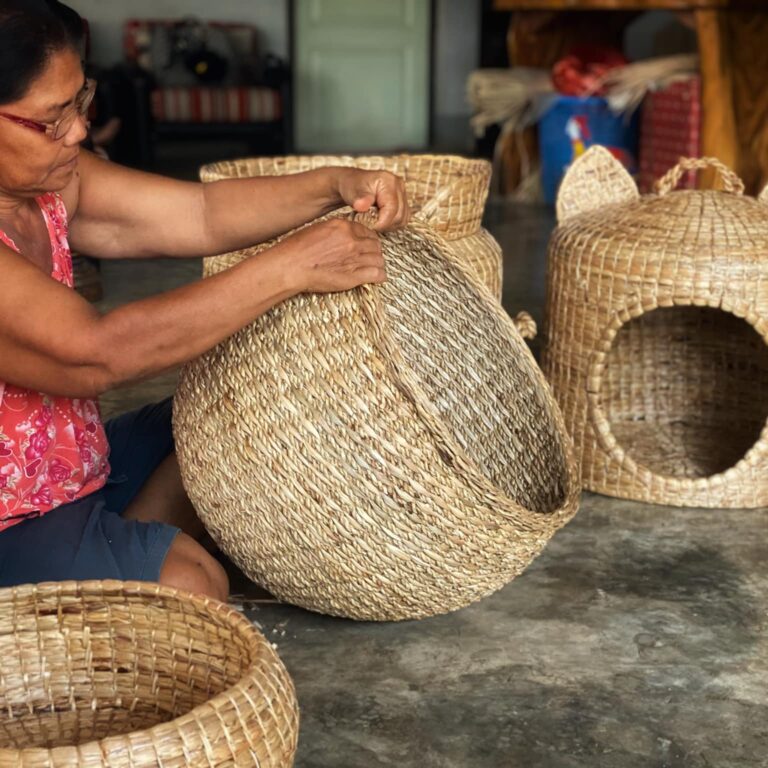 นอกจากนี้การนำผักตบชวาจากแหล่งน้ำธรรมชาติขึ้นมาใช้งานเป็นวัตถุดิบในการผลิต นอกเหนือจากเป็นการสร้างสรรค์งานหัตถกรรม ยังเป็นการช่วยอนุรักษ์แหล่งน้ำคูคลองอีกทางหนึ่งด้วยครับ